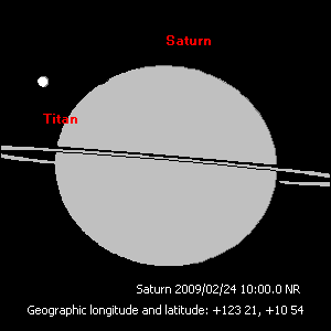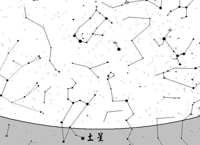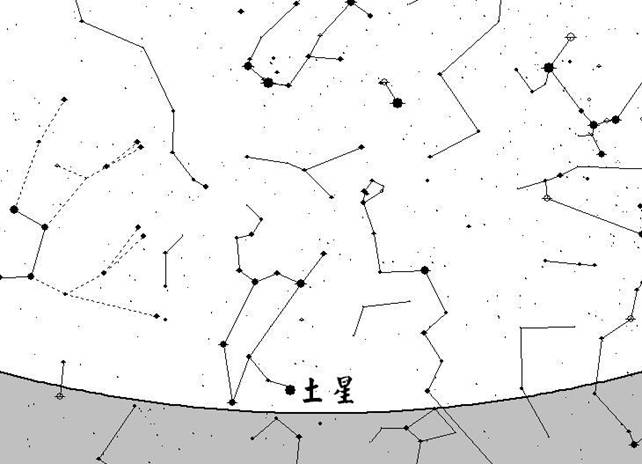 四十分鐘後,泰坦將在雲頂上空出現,這時土星剛離開地平線不久。